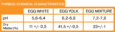 Pasteurised frozen egg products: Frozen egg white, frozen egg yolk and Frozen Whole Egg mixture, all of which combine microbiological safety with convenience both in their use and their handling, while ensuring that their physico-chemical characteristics remain intact.