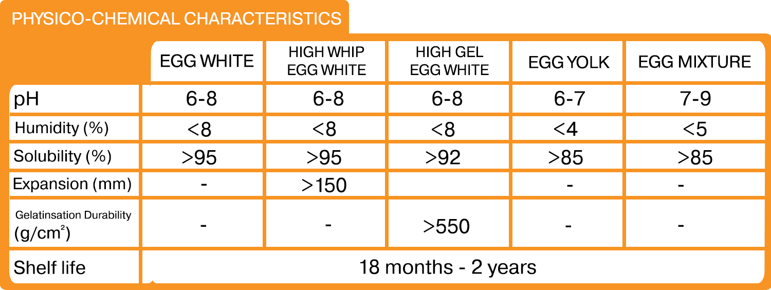 Pasteurised egg products in powder form: Egg White in Powder Form(regular,high whip and high gel), Egg Yolk in Powder Form and Whole Egg Mixture in Powder Form which offer great convenience both in their storage and their use, simply by adding water.